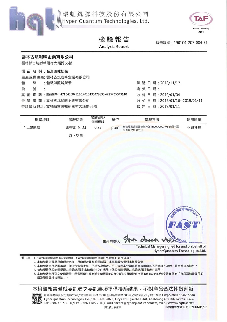 **不添加人工食品添加剂** 如香料、香精、麦芽糊精、豆胶、淀粉等之添加物。
