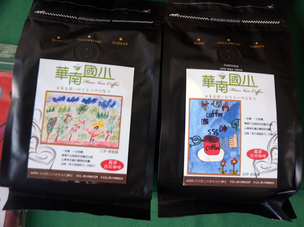 这次义卖,是云林古坑华南国小学生协助屏东长治百合部落园区的小农行销三地门咖啡豆。看到孩子真挚的眼神,在场大人毫不尤豫地掏腰包响应。每包半磅、贴着孩子画作的华南国小咖啡,虽然一包卖五百元,比进口咖啡贵上许多,但这些纯正台湾小农咖啡豆背后,代表着孩子尽一己之力,扶助莫拉克受灾户的爱心。